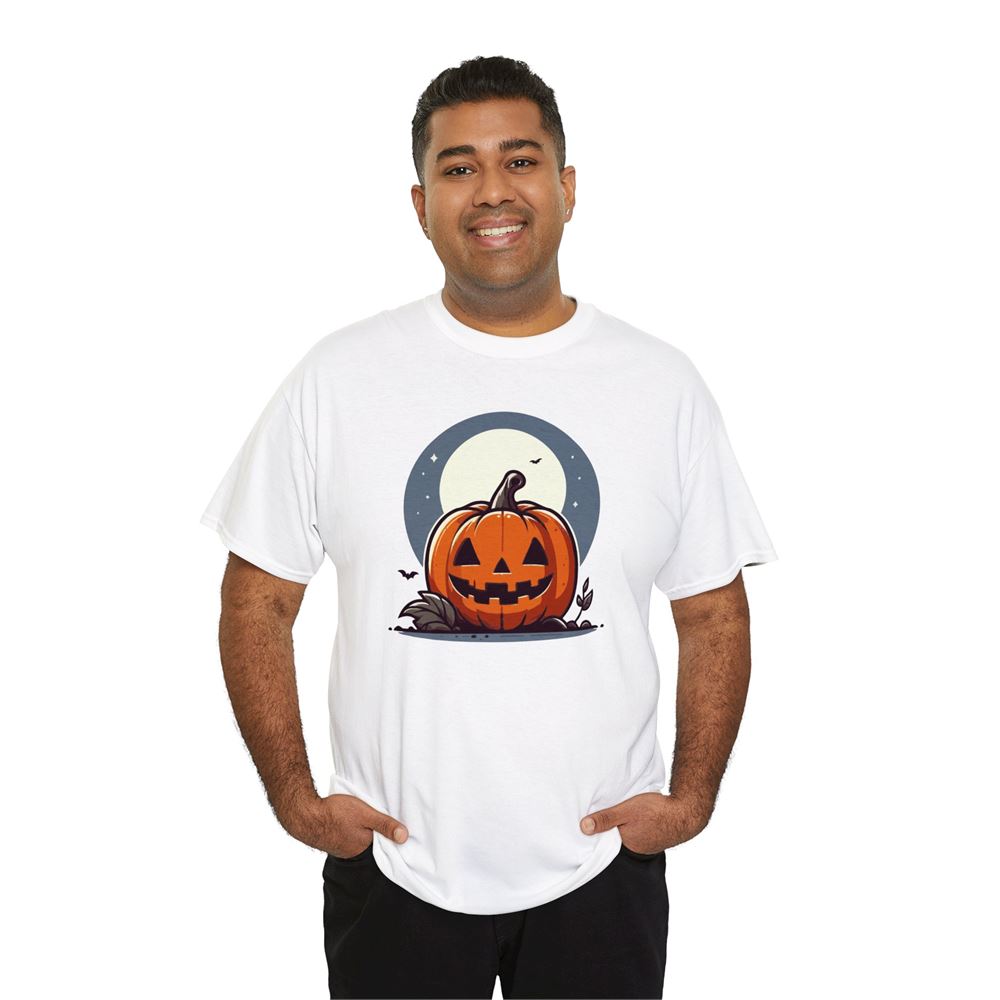 Jack-o’-lantern on a Spooky Halloween Night Unisex Heavy Cotton T-Shirt Medium